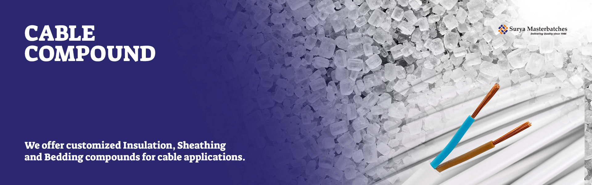 Cable Compound by Surya Masterbatches: High-quality, durable solutions for the cable industry .Cable compounds are blends of different types of polymers and other additives that are used for insulation, sheathing and bedding of cable applications. Each cable compound can have different specification and recipe based on the end application. These are used in manufacturing of many different types of cables such as Power cables, communication cables, and coaxial cables. we also provides various others customized compounds such as Conductive Compound, PVC Compound, ZHFR Compound etc.